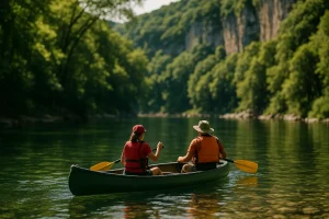 Le cœur de l’Ardèche bat au rythme de ses rivières. Imaginez-vous pagayant doucement sur des eaux claires, encerclées par des falaises vertigineuses et des paysages qui semblent figés dans le temps. L’Ardèche, avec ses gorges majestueuses, offre un décor parfait pour une descente en canoë inoubliable. Que vous soyez en